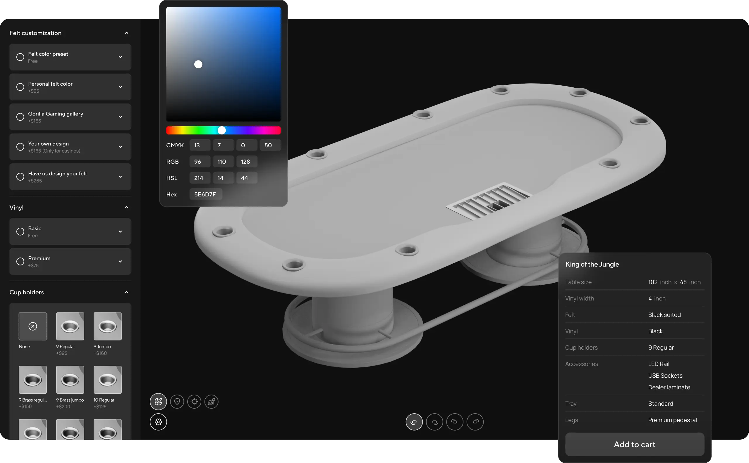 Gorilla Gaming poker tables are meticulously crafted in the USA from scratch, ensuring a comfortable and professional poker experience for every client.